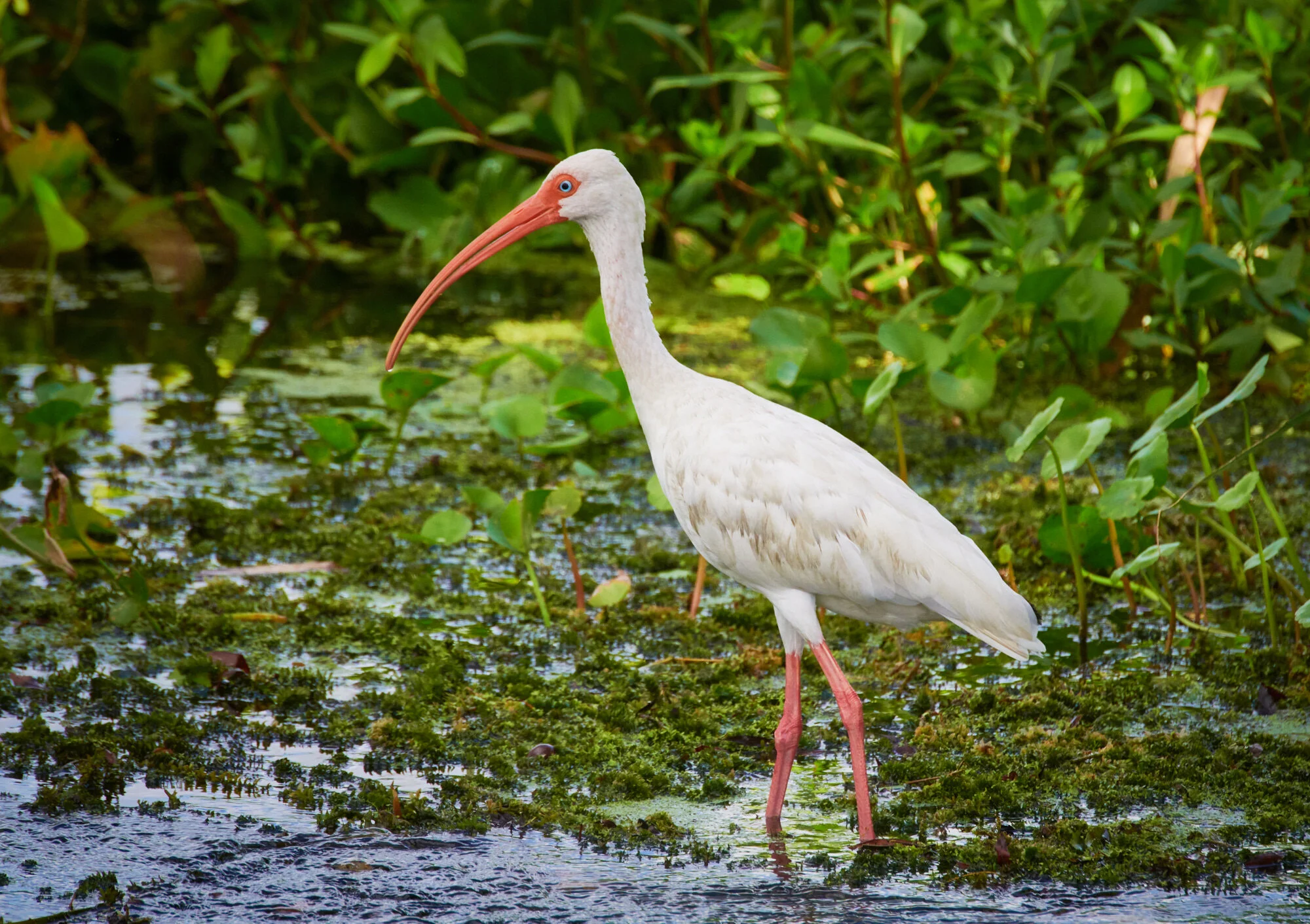 White Ibis standing in swamp
