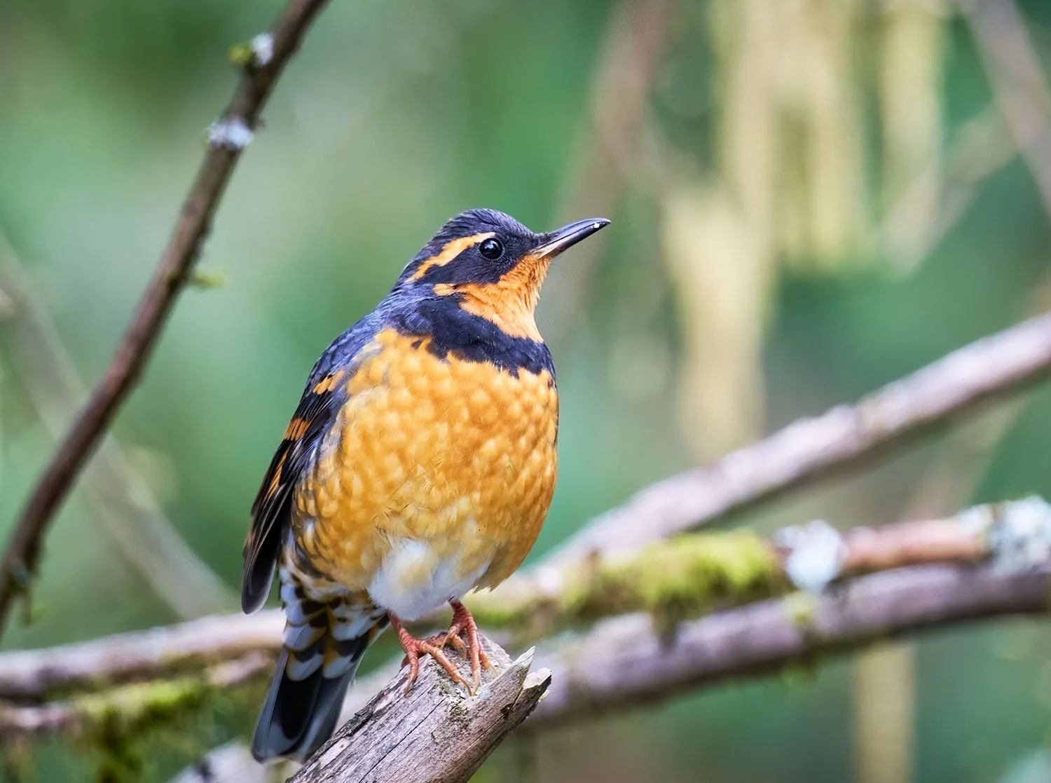 Varied Thrush in filbert tree. Though shy in the summer, they happily approach feeders in winter.